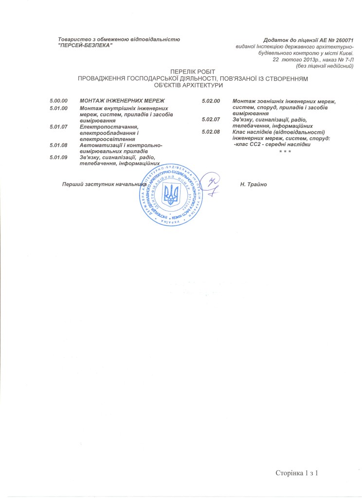 Лицензии Наша деятельность осуществляется в соответствии с лицензиями: Действующая лицензия на предоставление услуг охраны Лицензия на предоставление услуг охраны 2006-2011 гг. Лицензия на предоставление услуг охраны 2003-2006 гг. Лицензия на услуги связанные с созданием объектов архитектуры Перечень работ Сертификат